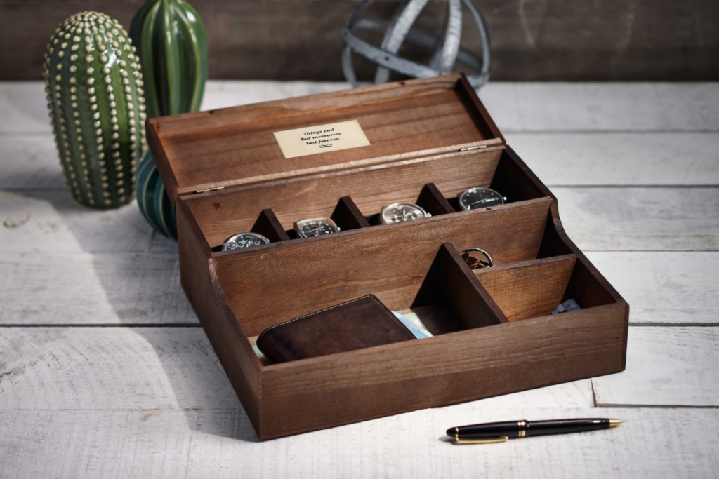 If he already has a collection of watches, an engraved watch box is a practical yet luxurious gift. These boxes, crafted from wood, can be customized with his name or a special message on the lid. Inside, multiple compartments keep his watches safe, organized, and displayed beautifully. It’s a gift that shows thoughtfulness and a keen eye for detail, perfect for the watch enthusiast.