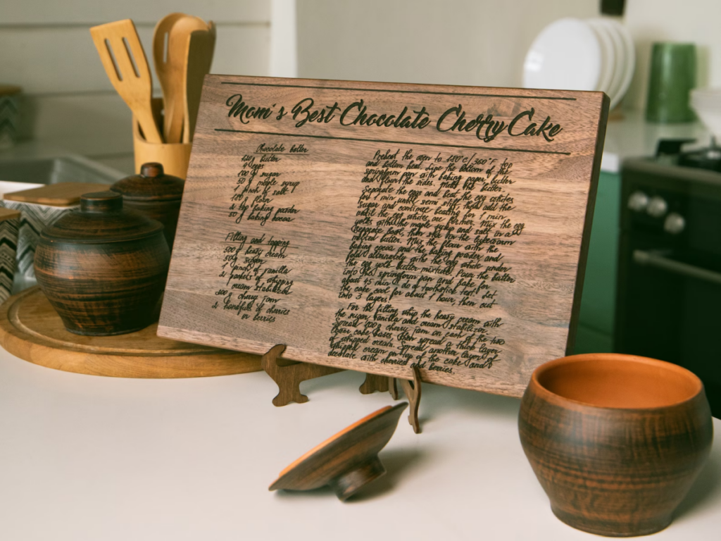 A cutting board featuring a handwritten recipe is a unique and heartfelt gift, especially for a man who loves to cook or cherishes family traditions. Etsy sellers can take an old handwritten recipe—like his grandmother’s famous cookies or his mom’s secret sauce—and laser engrave it onto a beautiful wooden board. It’s both functional and decorative, making it a wonderful keepsake for the kitchen.
