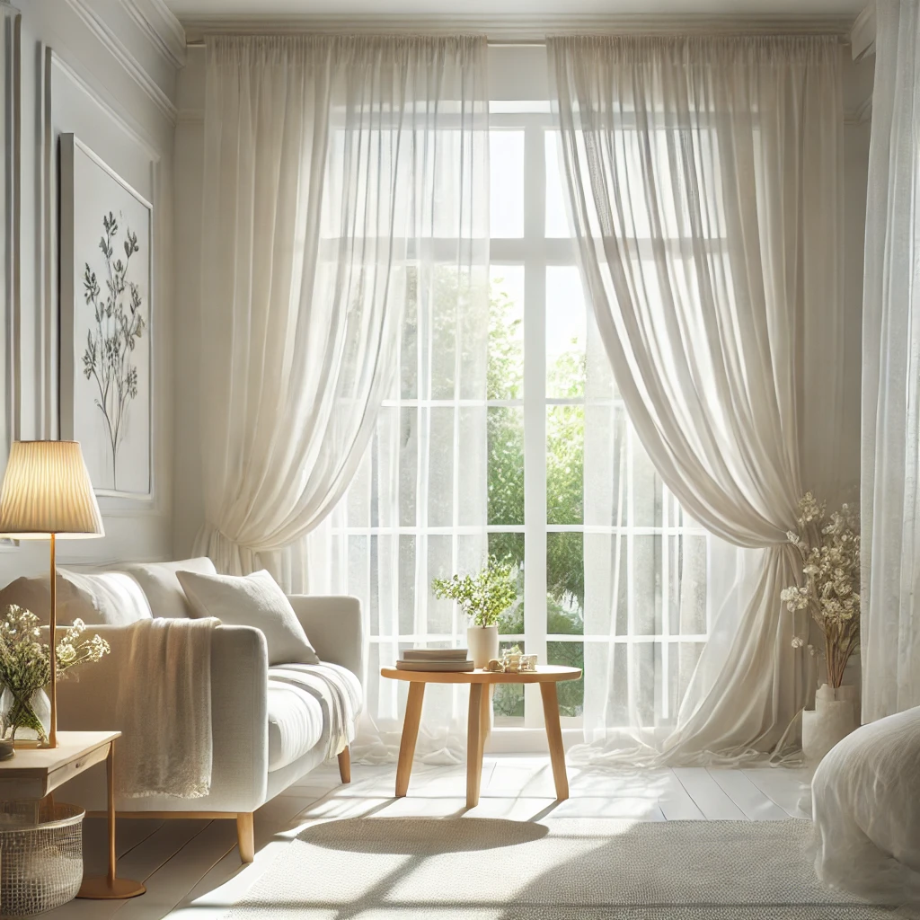 These sheer white curtains transform a sunlit living room into an airy and refreshing spring retreat. They allow natural light to flow through effortlessly, brightening the space while maintaining a soft and elegant look.