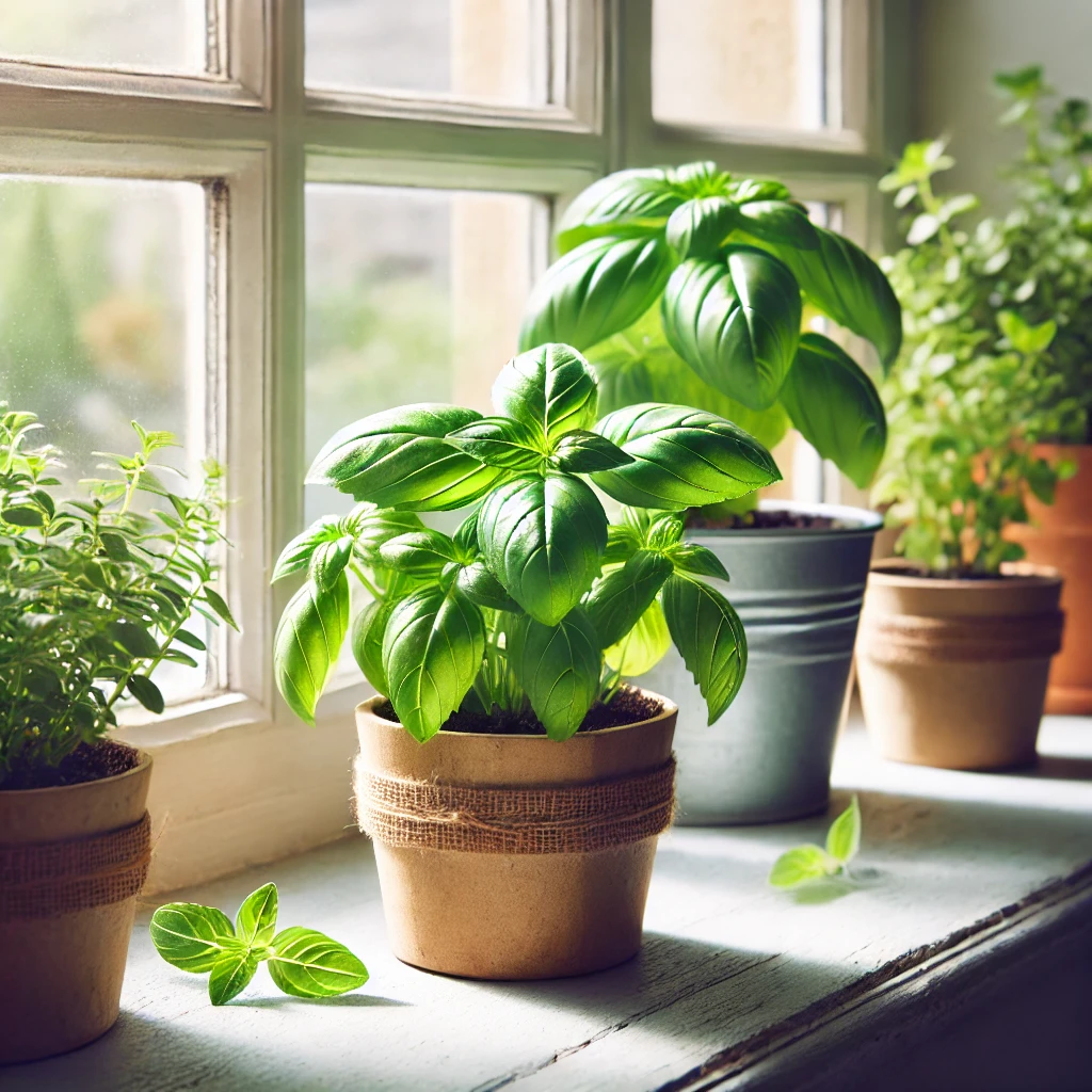 These small potted herbs, such as basil and mint, bring a fresh and natural vibe to a sunlit windowsill. The vibrant green leaves add a lively touch to your kitchen or living area while serving as functional plants for cooking.