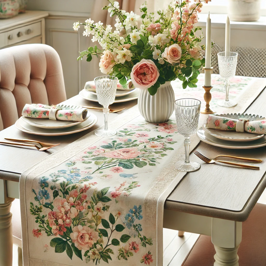 The delicate patterns and soft colors of the runner bring out the season’s cheerful essence.