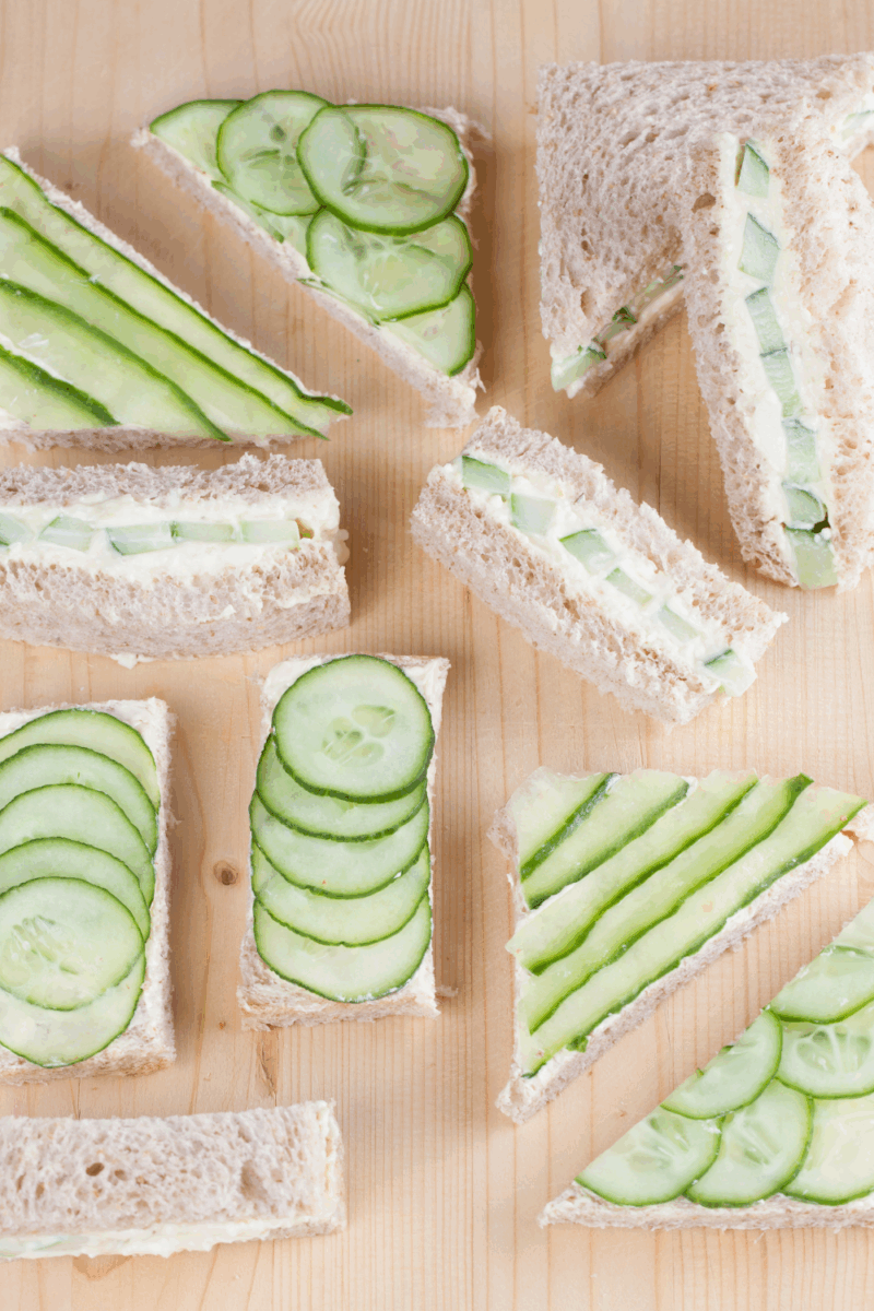 These are such a delicate and refreshing option for a picnic. I make mine with thinly sliced cucumbers, cream cheese, and a sprinkle of dill or chives between slices of soft bread. I trim the crusts and cut them into little triangles.
